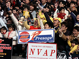 で、こちらがど真ん中を堂々、確保したプレート組み。 怪しい着ぐるみ3人衆ですが何か?(爆) ずうずうしく人の前に割り込んだり、プレートを 出す非常識な人がいるそうで、場所を確保するのに 苦労をしたそうです。 |