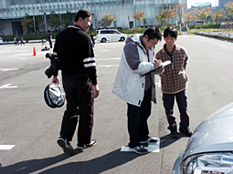 撮影の順番を待っている間の一コマです。 右から二人目に東北の方から乱入してきた怪しい人が いますが何か(爆)。深夜バスで東京入りし、 最終の新幹線で戻ると言うハードスケジュールで 参加してくれました。Q45さん、お疲れ様でした! |