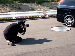 たかまこ号のピンポイント撮影中です。 スポーティーなフィンタイプホイールを カメラマンがショット中。 |