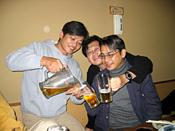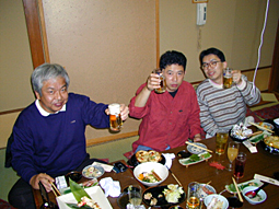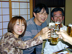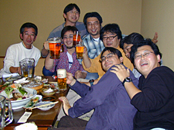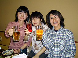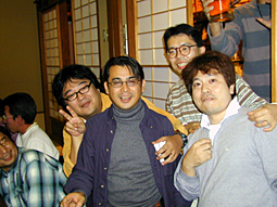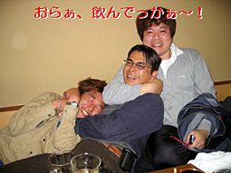 青森の3人組です。 さすが東北出身でやたらとお酒が強い! 日本酒党の幹事はこの3人と「乾〜杯!」 と言いながら一緒に飲んでました(笑) |