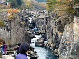これが厳美渓です。雰囲気は関東なら 長瀞をスケールを小さくした感じで、 大きな日本庭園と言った趣きです。 紅葉がきれいでした。 |