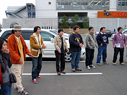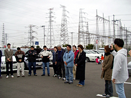 同じく自己紹介中です。 この後、施設の警備員からクレームがつき、 急遽場所を仙台港に移しました。 |