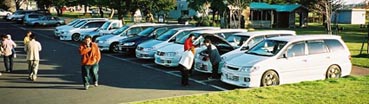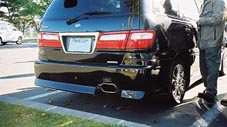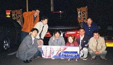 夕の部、もどき号をバックに。 インフィニティエンブレムやゴム製テールスポイラーも ついてました。 |