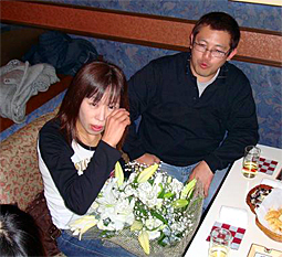 美女に囲まれたら 急に目が覚めた幹事♪♪♪ でもやっぱり目がヤバそぅ〜(爆) そして日付が変った2時頃にパーティーは終了 皆さんお疲れ様でした。 |