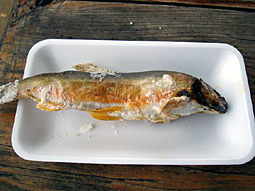 あゆ を かぶりつく プレジャさん 旨い〜! はるなちゃん 美味しい〜! |