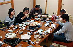 謎の宴会部長 びっくぱぱさんのご発生で乾杯! 会食を楽しむ参加者一同 あれ?まだ皆さんスイッチONじゃないなぁ・・・ |