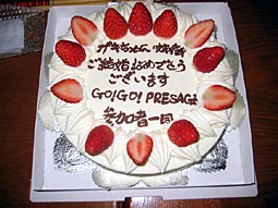 サプライズ その2 これまた参加者一同より メッセージ入りのケーキが登場♪ |