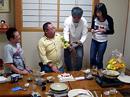 サプライズ その4 お店のオーナーさんから花束のプレゼント! お二人さんとても喜んでました♪ |