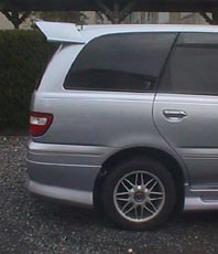 購入は通販で塗装込みで63600円。色の誤差は私の場合 ほとんど気になりません。 注文から2週間で送られてきました。 取り付けに関しては、はっきり言って大変です。出来れば ショップに頼むのをお薦めします。 隠しネジやら、ピン外すのが、とても大変です。(走行中に 飛んだらまずいですもんね。) 取り付けは純正ネジ穴2カ所を純正ネジ使用で固定します。 そのほか私は両面テープで補強しました。 あと、加工取り付け用のネジ穴が両サイドにあります。 ちなみにここまでの作業時間は外しに2時間。固定に1時間 かかりました。 スタイルは、はっきり言って凄いです。見ていただければ良く わかると思います。可変部分はネジにて固定(両方1カ所ずつ) 調整幅は2段のみ。1段は平行に、もう1段が抵抗がかかる状態 になります。 |