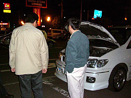 日時 2004年10月13日 20時から(夕食は18時30分から) 場所 札幌市東苗穂 とんでん駐車場 10月13日、仕事で北海道にこられたこいちさんを迎えて、歓迎オフ会を開催しました。 当日はNORIKOさんがすすきののホテルまでこいちさんを迎えに行き、幹事はまっすぐ会場入り。 18時30分ころから、asahikumaさん、MMさん、NORIKOさんと主賓のこいちさんを交えて夕食を 取りながらしばし談議。 オフ会開催時間の20時が近づくと参加メンバーが続々到着、夕食会場で自己紹介後、しばらく談 議。 参加者が13名になったところで座る場所がなくなり、屋外での談議に移りました。 こいちさんは多くの北海道メンバーと交流していました。北海道メンバーも生こいちさんに感激! 外ではさまざまなプレを眺めたり、光物大会があったり、ボンネットがあいたり、テレビ電話で話したり、 サンジ号の試乗会があったりと、遅い時間ではありましたが充実した時間が流れていきました。 ただ、10月の札幌の夜はさすがに涼しく、予定の22時30分になったところで一旦解散、その後も何 名か残っていましたが、23時30分ころに解散しました。 参加車両はU30が8台、U31が4台、FTOが1台でした。 参加台数が10台を超え、道央、道北、道東、道南からそれぞれメンバーが参加されましたので、幹 事の独断と偏見により、今回のオフ会は「第8回北海道オフ会」を兼ねることといたしました。 参加メンバー こいちさん、NORIKOさん@OG、なおちんさん、プレジージュさん、あっきさん(初参加)、とうさんさん 723さん、MMさん、asahikumaさん、ホクト号さん、あまぞんさん、YOUKOさん、EUROサージュさん 幹事のプレサンジです。(順不同) メール参加(幹事宛) 旅人さん、だいパパさん、ももパパさん テレビ電話参加 小島@OBさん |