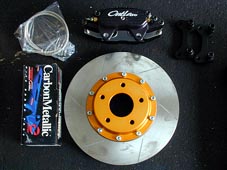 米:アウトロー社製S15用ビッグキャリパーキット。 ・対向4ポットキャリパー ・327φスリット入りローター ・ブラケット及び取付け用ボルト&ナット ・ステンメッシュブレーキライン ・PFC製カーボンメタルスポーツパッド 以上がキットの内訳です。 |