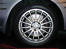 ホイールも取付けられた完成状態です。 本当はこのベルサス・セスト・ツーリズモはスペーサーを 入れないとキャリパーに当って入らないハズだったのですが、 前述のようにローターが厚くて、オフセットが変化してしまい、 ラッキーにもスペーサー無しで入ってしまいました(^^)。 インチアップすると隙間ができて貧弱に見えたブレーキが、 ホイール一杯まで大きくなり、見た目にも頼もしいです。 |