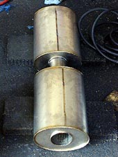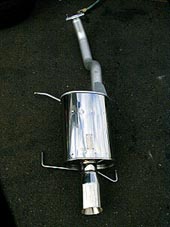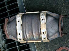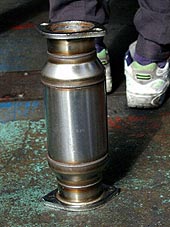 純正のキャタライザー、いわゆる触媒です。 重さはプレの場合、スポーツキャタより若干重い程度 でしたが、中の構造は抜けがよさそうな感じはしないも のでした。 |