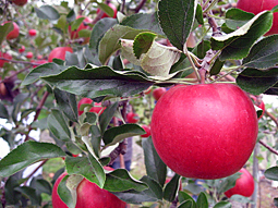 真っ赤に染まった美味しいリンゴ この後このリンゴは誰のお腹へ? (Ken-Boさん提供) |