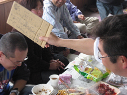 リンゴにかぶりつくのはなおいちさん その後ろにいるのがてらっちゃんさん(左)とまつおじさん(右) 手前で物色しているのはリサエちゃん(なおいちさんの娘さんです) (Ken-Boさん提供) |