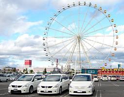 解散直前に観覧車の前で31前期型(しかも小変更前)ハイ ウェイスター・パールホワイト3台でパチリ。 左からマコ坊号、たくたく号、ひーちゃん号です。 |