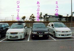 開催日時 11月3日(金) PM12:00〜PM17:00 開催場所 りんくうタウン公共駐車場 参加者 クウガさん、アウチさん、くさがやさん、miuさん (乱入) 吾妻さん、jerryさん、c.joeさん、あっぷる@さん 幹事 あきら、サージ 前日までは大雨で、当日の天気が心配されましたが、 当日はなんとか曇りで天気が良くない中、 10台(早退、途中参加含む)のプレが集まりました。 泉大津PAで7台のプレが集まり、現地に移動して話をしていると アップル@さんが登場され、8人で1時間程話をし、昼食を食べに 行く時に、アウチさんがお仕事の為早退されました。 仙台オフ会の牛タンとは比較にならないほど質素な昼食を食べ、 駐車場に戻るとC.JOEさんが来られておりました。 その後、3:30頃にmiuさんが来られ、エンジンルームを開ける などしながら話をし、定時の17:00過ぎまで楽しい時間を過ごしました。 (by あきら) 天候も何とか回復して第3回関西オフ会を開催することができました。 心配していた参加者も参加表明6名、乱入なんと4名、計10名集まりました。 遠くは、静岡から参加の、くさがやさん、三重から参加の吾妻さん、miuさん そして参加の皆さん有難うございました。 今回のオフ会は、初対面の人も顔見知りの人のように昔からの友人のようでした。 プレ談義も尽きることなく次の関西オフ会、開催を約束して予定のPM:5時を 過ぎPM:6時前に解散になりました。 その後、私(サージ)と吾妻さん、jerryさん、miuさんとの4台のプレでお 土産の みたらしだんごを買いに行きました。(ここのだんごは、うま〜い!) 本当に楽しい1日でした。 (by サージ) |