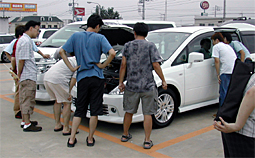 日 2003年8月31日(日) 時 AM11時からPM17時30分 場所 オートウェーブ柏沼南店 参加者 oki@OBさん、プレ77さん、青ちゃんさん、アレックスさん チュンバさん、下山さん、ダリアンさん、ヒューさん、たくみさん ふじい@OBさん、小島@OBさん、クーさん、036さん、ひなぱぱさん ベイシーさん、山田さん、鎌ちゃん@GO!バサさん、 StarRiseさん@GO!バサさん、こいち ダリアンさんと私が会うことになり、せっかくだからとミニオフを開催 しようと告知しましたところ、総勢19台もの方が集まってくれました。 今回の目玉はなんといっても関東のオフにU31が初参加したこと です。U30からU31のriderへ乗り換えたアレックスさんが参加し てくれました。 riderが会場に来るとボンネットあけ、室内に入り、まさに展示車 状態。あげくのはてにはU30とU31のQR25エンジンを比較して いました。 皆さんやはり興味があるのですね。 天気は多少雨のようなものが降りましたが(爆)、何とか1日持ってくれました。 ただ夕方は寒かったです。 |