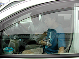 ![]() | ヒューさんと下山さんは早速Riderの中へ |