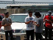 ■日時 2002年6月2日 10:30〜23:00 ■場所 SABサンシャインワーフ神戸→大阪堺、カモドゥー→コンチネンタル ■参加者 SABから 【GOプレ】小島君、平松さん、かずりんさん、たかみつさん、ぜんきさん、 ひがこさん、きららさん、たけもとさん、のりさん(OB)、サージさん、あきらさん、 miyakkoさん、クウガ 【GOバサ】くろぴーさん、やっちんさん、きったんさん、キャプテンさん、しばさん、 カモドゥーから せんごくさん、jerryさん、アウチさん、ナガさん ・。・゜★・。・。☆・゜・。・゜。・。・゜★・。・。☆・。・゜★・。・。☆・゜・。・゜。・。・゜★・。・。☆・。・゜★・。・。☆ 埼玉から仕事の関係で単身、姫路に乗り込んで早1年半。 その間転勤が1度あったものの何とか関西に留まっていましたが今回は退職され埼玉へ帰る事になった 小島君を送り出してあげようとオフ会を企画したら何と総勢21台も集まってしまいました。 これは小島君の人徳のせいか、はたまたサードタイトル「単にオフ会しようよ」で集まったのかは定かでは ありません。 何台か集まった集合10分前。 子供とジュースを買いに言った時、見た事のあるエスクが目の前を通過! そうです。神奈川乱入王の1人、のりさんです。で、なんと助手席には彼♀。 これを見た小○君の目が点になっていたのを私は見逃しませんでした。 さて、関西ではオフ会定番のSAB駐車場。 満杯になるのを避けて早めの10:30に集合時間を設定にしたにも係わらず出だしから当地管理組合より クレーム!! 「日曜日にこの台数集めて一画を占領されるのは困る」との事。 何とか12:00まで居させて貰うことで交渉成立。 幹事の情報収集不足によりSABからお集まり頂いた方々には大変ご迷惑をお掛けいたしました。 特に遠征乱入されました平松さん、きららさんには予定外の場所移動に伴いSABでお別れとなり、申し 訳ございませんでした。 この日のサブタイトルは「小島君の名刺を貰おう」と言う事で彼はせっせと名刺をPC上で完成させ、いざ 印刷!・・・・と言うところでPCがこけたそうです。私にレスキューコールが来たのはオフ会前日!! 結局夜なべして名刺作成を手伝わされたと言うオチがありました。 普通、関西のオフ会で自己紹介なんてやってないのですがこの日は遠征、初参加の方も居た為、自己 紹介をやり丁度円陣体制でしたので「小島君そのままみんなに名刺配ったら?」となり彼はぐるっと一周 名刺を配り、満足そうな顔をして居ました。 ここで場所移動! 一部の方とはここでお別れとなりました。 それでも12台で阪神高速湾岸線を一路、堺まで編隊走行と予定外の演出に皆さん満足!! 現着後すぐに各人取付作業、昼食、談義、昼寝?、色々でした。 小島号にもピンクのネオン管が装着させられました。(強制的) 15時過ぎにのりさんを送り出し夕方のでまったりとこの場所でオフ会。 一応、中締めをして常連、AKDメンバーによる夜の部、突入です。 またまた場所を移して密会第一基地24hレストラン「コンチネンタル」 小島君との思い出話に花が咲かずいつものようにダベって23時にお開きとなりました。 |