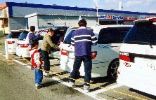 日時 平成13年2月11日(建国記念の日) 場所 福岡県海ノ中道マリンワールド 参加者 zamaさん、りきりきさん、じじさん、あきのりパパさん、みのちゃんさん、吉川 計6台、家族合わせて16人参加(ヨリさん・かわっちさんTEL乱入!ありがと〜) この日は久しぶりの快晴で、非常に良い行楽日和でした。まず、zamaさんが到着済み で私・じじさん・りきりきさんが次々到着。早速みなさんの足回り等を見学して談義。 一見ノーマルのじじさんプレも17+車高調でばっちり!りきりきさんも18+エスペリア アクシス、zamaさんも19+RS−Rアクシスで究極?の車高。あとオーディオを見せて もらいなぜかzamaさんのウーファーの近くにエルグランドのプラモが!!!(未組み立て) その後、おなかすいたとの事で一路ジョイフルへ。途中であきのりパパさんと合流! 5台そろってのプレ編隊に反対車線の車は、!?!?(いかついプレが何台も・・・) 食事中にみのちゃんさんからTELでまたまた合流。皆さんそろってお食事終了。 すでに時間が、と言う事でまたまたマリンワールド遊園地の駐車場へ。 とりあえず閉園が4:30ということで写真撮影開始。横一列や1台1台を撮影、並んでるとき なぜか軽自動車が乱入!?あっと思ったのかすぐ出て行きました・・・。 そして撮影も無事終わり、談義も少なめでしたが4:30には解散と言う事で各自バラバラに。 みなさん初対面で時間もなかったせいか多少?物足りない面もあったかと |