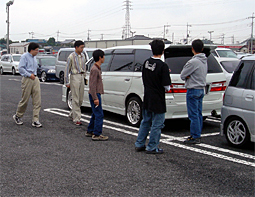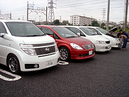 参加者の皆さんのお車 その2 左からマコ坊号、プレ77号、お店の人のディア○ンテ(笑) おすまん号、旅人号、ヒューベリオン号 |