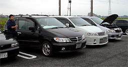 日時 2004年10月11日(祝) AM11時からPM17時頃まで 場所 オートアゼックス幸手店 参加者 マコ坊さん、旅人さん、おすまんさん、はまかずさん、下山さん、ベイシーさん、 のぶすけさん、あすかのパパさん、やまりんさん、ヒューベリオンさん、ヒデ@OBさん プレ77さん、鎌ちゃん@GO!バサさん、マイ@GO!バサさん、oki@OBさん、こいち U30:9台 U31:3台 バサラ:1台 OB:2台 延べ15台 電信電話乱入 たくみさん、小島@OBさん、青ちゃんさん、NORIKOさん、こまざきさん nigelさん、インチさん、PJAさん 山形のマコ坊さんが埼玉に来られるということで埼玉の聖地「オートアゼックス幸手店」で ミニオフを実施しました。 天気予報では午後から晴れる予定でしたが、やはり私は雨男のようで1日小雨が降ったり やんだりのすっきりしない天気でした。 ※画像には一切傘が写らないようにしてあります(笑) 今回のオフは山形からマコ坊さんが参加され、新しい方も数名参加してくれて、また約3年 ぶりのオフに参加してくれたヒデ@OBさんにお会いできとても嬉しかったです。 また埼玉のオフ会では珍しくマフラー交換等の作業も行われ、とても充実したオフとなりまし た。 |
