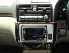 取り付けは、AXIS標準(CVタイプ)の木目部を残し コンポ取り付け部をくり抜いて、CU用コンポ取り付け 部もくり抜いて組み合わせたあと黒い部分をコンポに 合わせシルバーに染めてもらいました。 |