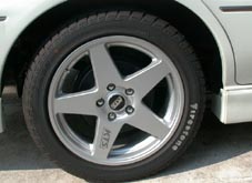 アルミです。 BSのKTSの17インチホイールです。 タイヤはファイアーストーン215/50です。 |