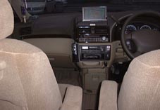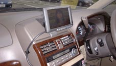 セカンドシートから見たワイドモニタ取付位置。 この位置から子供がTVを見ても7inchワイド 故によく見えます。 ナビ用のリモコンが写ってますが、現在固定位 置を検討中です。 オーディオ類はド純正です。 |