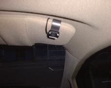 音認用マイクは運転席側バイザーに写真の ように取り付けました。大きな声で喋らなくて も雑音がなけ れば小声でも充分認識しますよ (走行中のプレの静粛性ならば充 分です)。 |