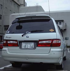 後ろから見たところ。 リアウインドウ右下のステッカーは福岡に ある交通安全の神様「宗像大社(むな かたたいしゃ)」のものです。 |