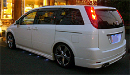 グリル:IMPUL(メッキモール付) ボンネットスポイラー:IMPUL サス:ZOOM ホイール:Spirits 19・8j・+38 タイヤ:PIRELLI マフラー:ワンオフ デュアル2本出し エアクリーナー:IMPUL VALVE CAP:GARSON KEYRESS EMBLEM:GARSON シートベルトアンカーボルト:NISMO SHINE TEILKIT:GUMP その他