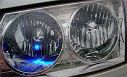 HIポジ入れました。 ウエッジのソケットを通して青LEDのウエッジ 球を入れてます。 |