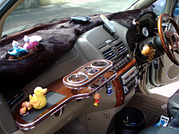 つかださんに譲って頂いたフロントテーブルと、 masa940さんに譲って頂いたシートカバーです (あんまりみえませんが。。すいません) フロントテーブルを付けるだけでガラッと雰囲気が 変わりました。シートカバーもジャストでした。 以前買ったやつは合ってませんでした。。。 ステアリングもmomoにしてすっかりあたりは、木目 揃いになってきました。 うれしい限りです(泣) |