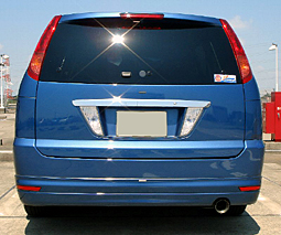 斜め後ろから#2。 リアワイパーとウォッシャーノズルも外してしまって スッキリ! エンブレム等も全部剥がし、異物(爆)はステッカー とバックカメラのみ。 |