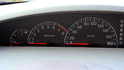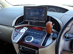 ナビはオンダッシュモニターを水平よりも 下げられるステーを使ってこの位置にセット しています。燃料計は1/3くらいしか見えま せんが、時計と外気温表示はギリギリOK。 空調表示は問題なしです。 オーディオ用の操作ボタンもカッティング シートで覆ってしまいました。 |