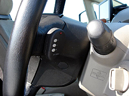 ステアリングの裏にはパドルシフト!ではなく、 無線リモコンで操作するODスイッチを貼り付け てあります。 |