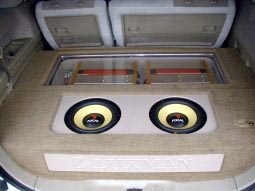 3列目を潰してアンプ、サブウーファー、クロスオー バー、ナビなどを入れました。Hi−Fi系なので低 音は控えめです。 |