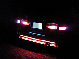 リアバンパー凹み部分に赤LEDを仕込 んでみました。 メッキに反射して綺麗です。 |