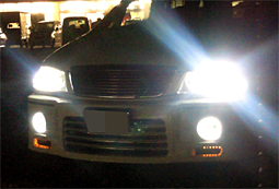 HIDは社外品です。 55w8000k明るいですよ! フォグ周辺にLED仕込んでます。 |