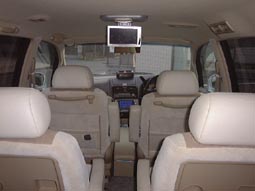 3列目から見るとこんな感じです。 後部座席用テレビは、子供達には役立ってるそうです。 Sナビの画面が下過ぎて見ずらくて、失敗しました。 |