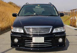 以前からの念願だった、アクシスバンパーを装着しま した! 中古のアクシスバンパーを入手し黒に塗装し、ディー ラーに頼み込んで加工取り付けしてもらいました。 純正車とアクシスのバンパー形状が違うため、バンパ ー内の各部品をアクシスのものに交換し、さらに加工も したため、かなりの出費になりました。 |