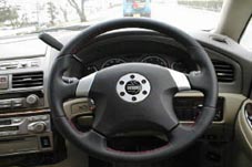 MOMOのスポーツタイプを装着しました。 本革巻きの若干小径ハンドルはぴったりと 手に馴染みます。 コラムカバーの黒と一致して浮いたような 違和感はありません。 |