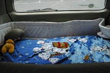 サードシートはドライブの帰り道ではベッドに早 代わりです。 安全性はよくないのですが、 一年後のチャイルドシート法制化は 頭が痛い? |