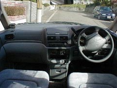 シンプルな内装。木目の欠片もない。 プレイリーに付けていたナルディ・ウッドステアを 付けるかどうかが今後の課題。 |