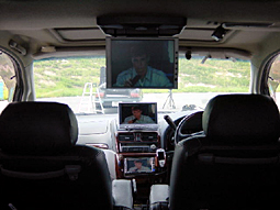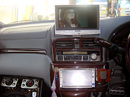 今度は12,1インチフリップダウンモニターです。 それとカロッツエリアのDEQ−P9、AXM−P9、 TS−CX7を追加して5.1chの完成です。 |