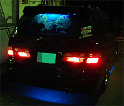 リヤゲートオープナーとリヤカメラ リヤカメラを取り付けるのに場所を悩んだ結 果、純正オープナーを取外してそこにリヤ カメラをセットしナンバー燈のレンズにスイッ チをつけました。 |