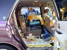 ![]() 室内です。 いつのまにか、かみさんの趣味のP oohさんだらけになってしまいました。 子供の遊び場を確保する為セカン ドシートの7:3の7を取りました。 結構使い勝手良いですよ〜 |