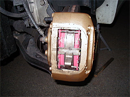 スプリット状態 ゴールド&クリア塗装 阪神ブレーキ工業のピンクパッド(ミューゼ) |